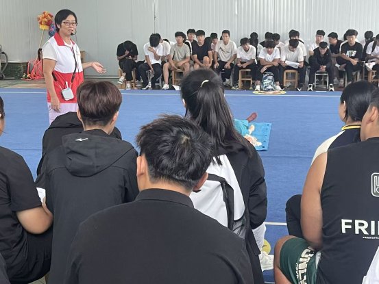 活动中,红十字会讲师们采用“理论讲解+实操演练”的模式开展培训。在理论授课环节,讲师不仅系统讲解心肺复苏操作流程、运动损伤应急处理等核心知识,还结合国防教育主题,补充战时简易救护、防空疏散中的自我防护要点,让师生深刻理解“应急救护能力是国防安全的基础支撑”,将个人安全与国家国防紧密联系。