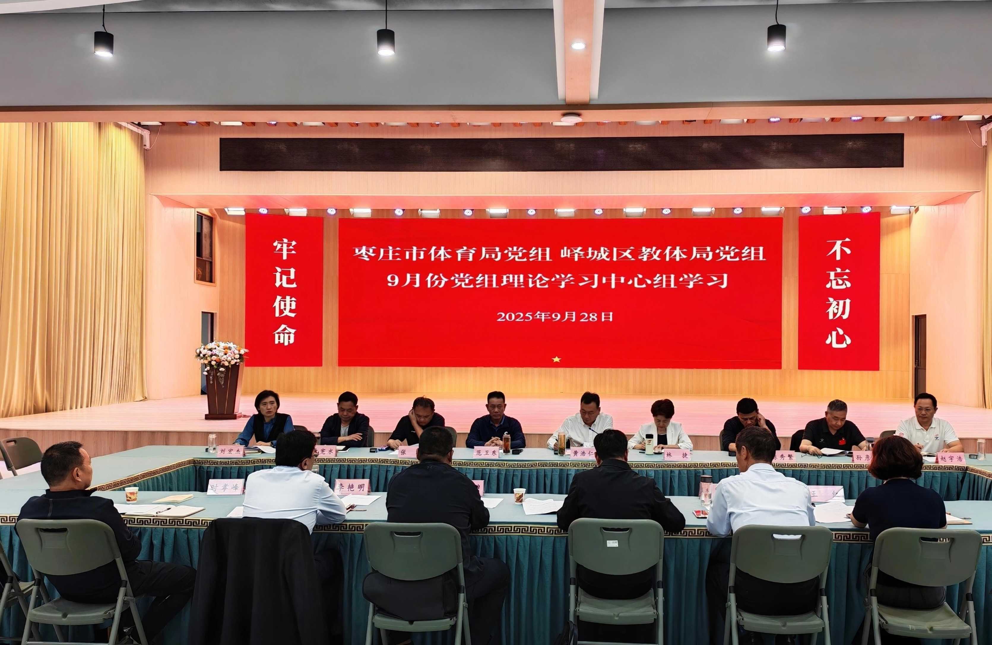 9月28日下午,市体育局党组理论学习中心组联合峄城区教体局党组在峄城区石榴红体育产业基地会议室举行第十次集中学习。党组书记黄浩仁主持,市体育局领导班子成员、县级干部和峄城区教体局党组成员参加了学习。