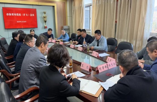 2025年12月29日,市体育局召开党组(扩大)会议,传达学习市委十二届九次全会暨市委经济工作会议精神和《关于做好2026年元旦春节期间有关工作的若干措施》,研究贯彻落实工作。会议由局党组书记黄浩仁主持,局党政领导班子成员、其他县级领导干部及机关各科室负责人参加会议。